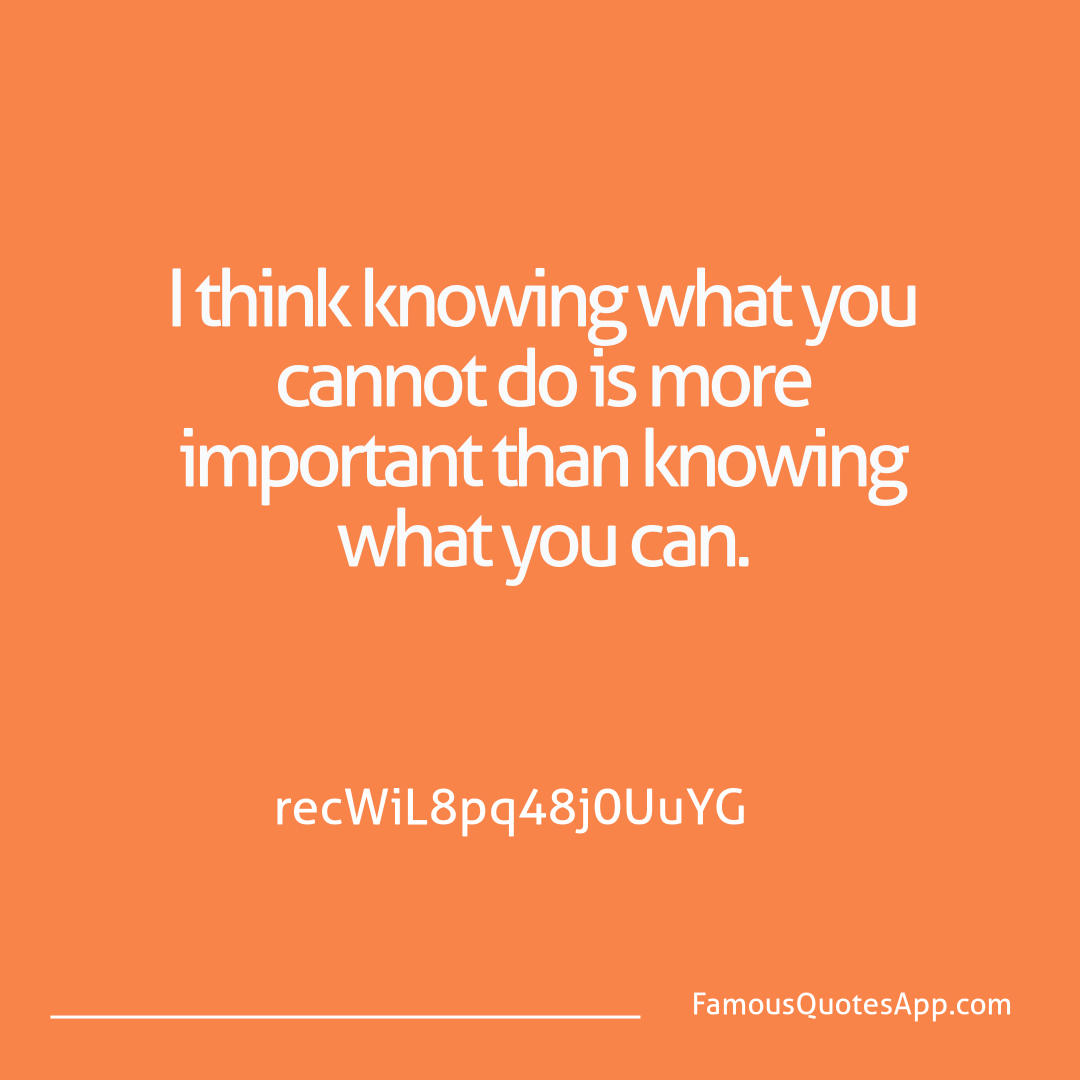 I think knowing what you cannot do is more important than knowing what you can.